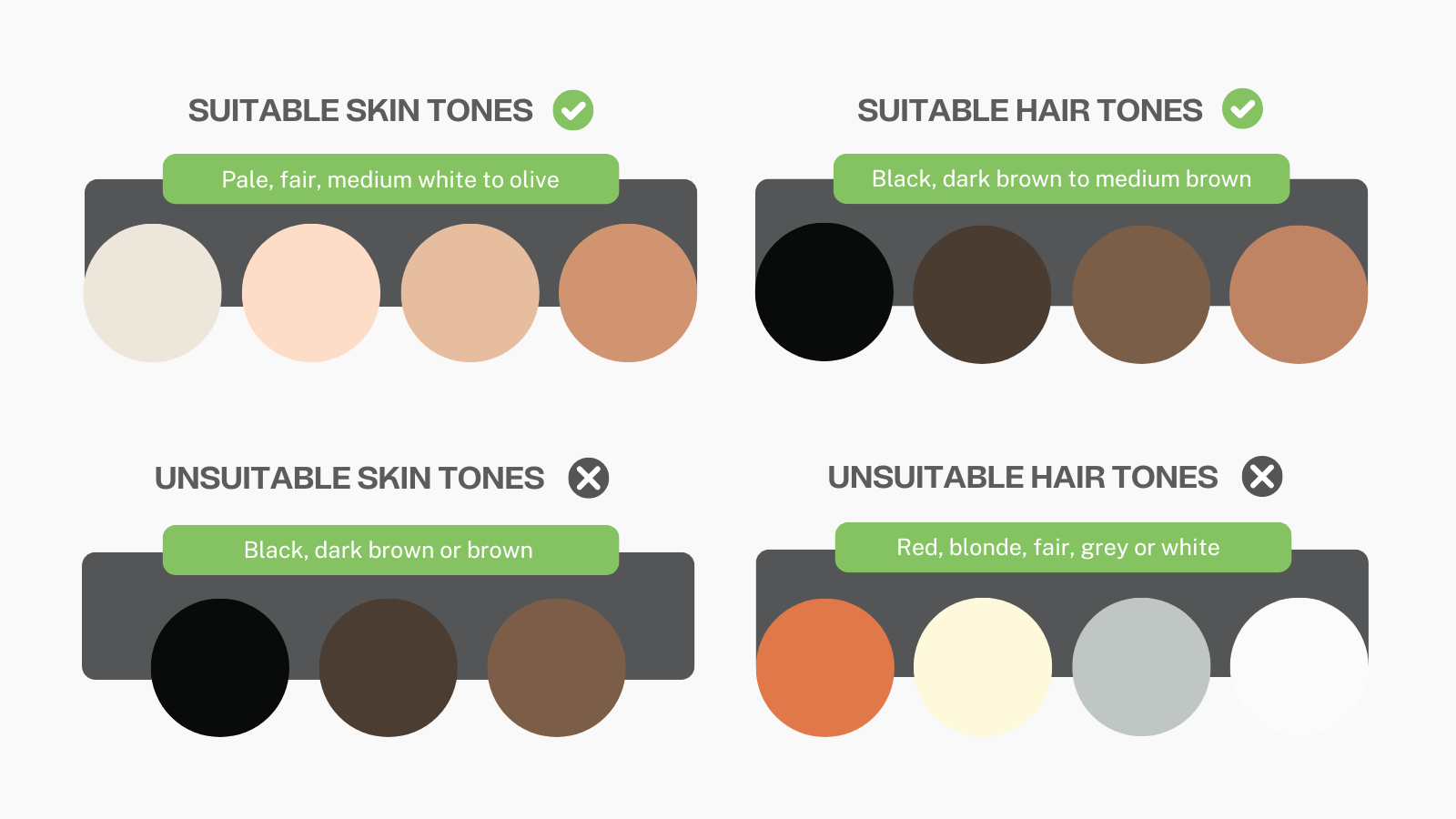 At-home laser hair removal is suitable for men and women over 18. The Tria 4X Hair Removal Laser is safe and effective for anyone with skin tones I to IV on the Fitzpatrick Scale with light brown to black hair. For a rough guide, please check this suitability chart.
